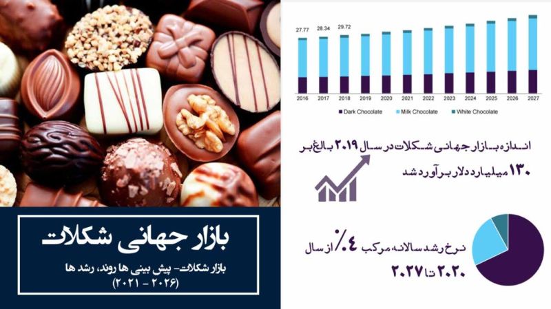 بازار جهانی شکلات – رشد، روندها و پیشبینیها (2020 – 2027) گزارش کلی اندازه بازار جهانی شکلات در سال 2019 بالغبر 130.56 میلیارد دلار برآورد شده