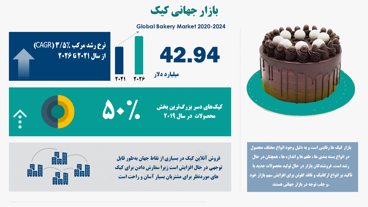 نگاه اجمالی بر بازار تحقیقات بازارپیش بینی میکند، بازار کیک ها با نرخ رشد مرکب (CAGR) 3/5% درصد از سال 2021 تا 2026 باشد. پانادمی