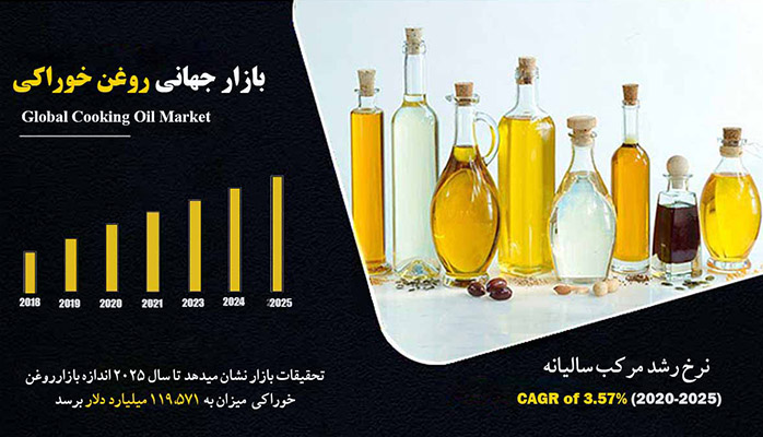 نگاه کلی به بازار تحقیقات بازار نشان میدهد که بازار جهانی روغن خوراکی [1] با اندازه بازار 96،878 میلیون دلار در سال 2019، تا پایان سال 2025 رشدی با نرخ